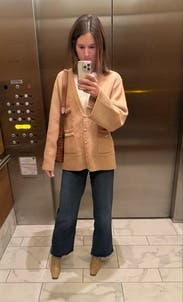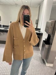 I wore this sweater at least two times a week. It is such great quality and really elevates an outfit with the gold buttons.