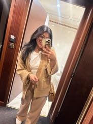 This is a GREAT sweater. You can go bigger to have an oversized look (but be warned, there are bell sleeves) or order your size and have a chic, elegant sweater to throw over everything. I wore it wile WFH, out to dinner and lunch and even with a silk blouse to an event.
