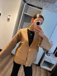 Elevated cardigan with just enough detail. Great for work. I put a button up under it and some leggings. A little on the longer side but I’m short and it hit perfectly about 3 inches over my waist