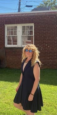 I wore this for work, and had to safety pin it since it was too low cut on me. Very comfortable but note that the lining is short so if there’s a breeze you’ll have a wardrobe malfunction