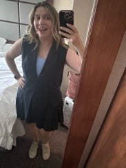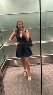 With a white bodysuit under, it made it work appropriate. I had a bit of a Marilyn Monroe moment in the wind, but my bodysuit had me covered. Ppl at work said I had school girl vibes and flight attendant vibes but I don't care! It was comfy and cute lol.