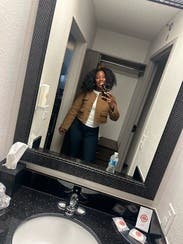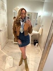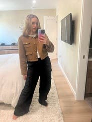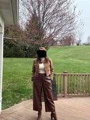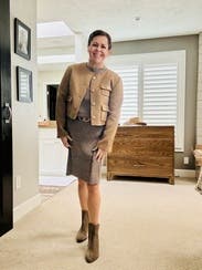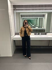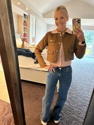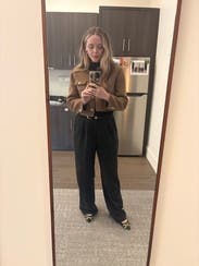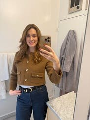 Loved this brown jacket and the fit was great. Perfect to wear to work and drinks after