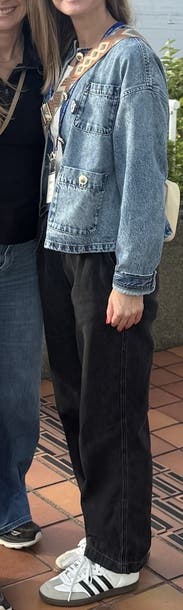 This jean jacket has a relaxed, boxy look and runs a bit big and wide, which makes it comfortable to layer over other pieces. The fabric is soft and cozy, and the jacket features beautiful details that elevate its style. It’s casual yet chic, perfect for everyday wear.