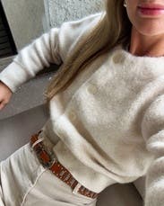 Such a great quality sweater! It is cropped, but I found myself wearing it multiple times a week. The thickness is great for the shoulder seasons. Couldn’t recommend it enough!
