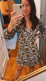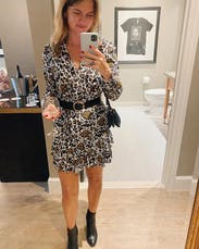 This dress was husband and friend approved. Liked the length but had mixed emotions about the print. Everyone liked it though. Feel like I could have gone down a size for a better fit. Definitely liked it better with a belt.