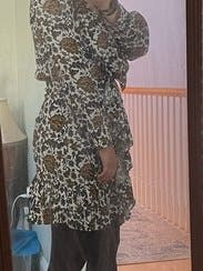 The cut and pattern on this was very cute, but I am only 5 foot three and this is very short I had to wear with leggings.