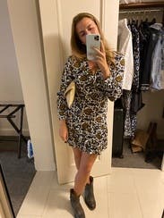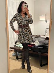 perfect fall dress! Wore it twice- styled with tall boots and a camel coat once and sock booties and a suede moto jacket