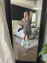 Wore with a belt and western boots like photo. Super cute and good fit.