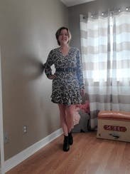 This was a cute dress, however the fit could be slightly improved as it wasn't low cut or form fitting enough to be flattering. Tried to define my figure with a belt and heels, I think it would also look good with combat boots dressed down. I felt like the print was more fall appropriate vs summer.