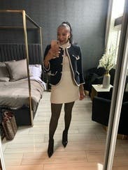 I received the most compliments. The navy and cream compliment each other so well. I paired it with a simple navy dress and booommmm ready for my work conference.