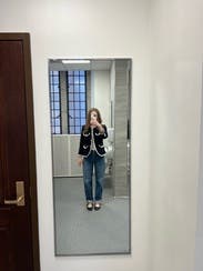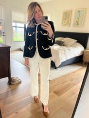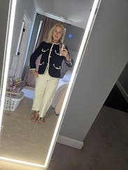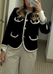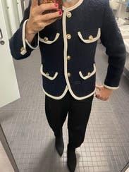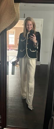 Wore so many times. Very fancy and put together. It’s a heavy blazer so not good for warm days. Got lots of compliments