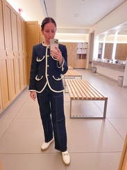 I loved this blazer! It is classy and sophisticated, but does run big. Would recommend sizing down. It is a wool jacket, so definitely more of a fall/winter jacket than spring in Florida. The rounded corners on the front gave it a more unique look that paired well with high waisted slacks when buttoned all the way up.