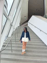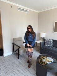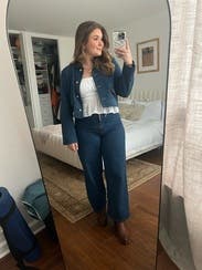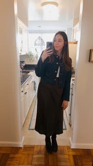 I rented this for an early fall trip to NYC. I wish I had more places to wear it (I live in Miami where this isn't the vibe.) I love Sandro and LOVED this cropped denim jacket with dark brown leather details. Would've worn more or kept longer if I lived in New York.