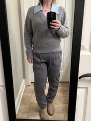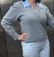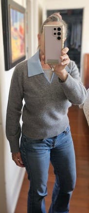 This classic sweater was great to wear to work. I loved having the look of a blouse underneath without the bulk. Since the collar is sewn on, it always stays perfectly centered. It's comfortable and high quality, and the colors are versatile.