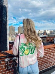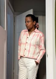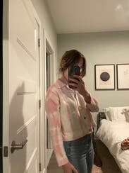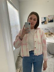 RTR team review here! This cardigan was super comfy, fit is TTS just slightly cropped which made it feel a little boxy. I wore it for everyday/work and got so many compliments on this at the office! Especially loved the Y2K vibes, I normally wear neutrals so it was fun to wear brighter colors for once. It's also a bit thicker so perfect for a spring day in the 60s or so — would definitely rent again.