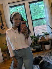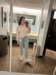 But otherwise, a great fit, soft material cute with high waisted jeans and tennis shoes. Wore on a food tour while on vacation in Nashville then for cocktails at a bar with outside swings. Perfect for 65 degree weather.