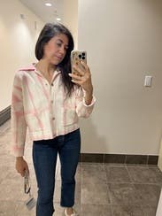 Loooved this top, love how it gives one look from the front but has the fun pop on the back! Wore it buttoned up but could definitely wear it with a tank or something under it and open! Will be renting again in the spring!