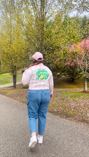 I wore this multiple times — at a music festival, on a casual weekend outing, and as a sweater for work layered with a graphic tee. It was perfect and the message on the back is the icing on the cake.