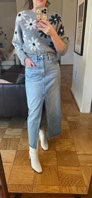 Felt less Elder Millennial than I am in this 😂 and loved to pair with jeans too. Soft and thick but not itchy, the fit is fun: a little boxy but not too full. Size 2 was ideal for me!