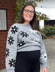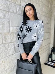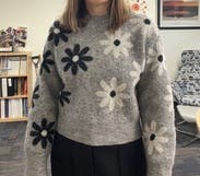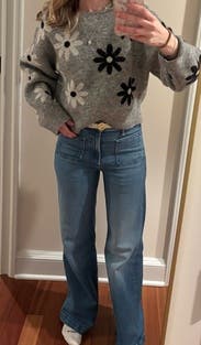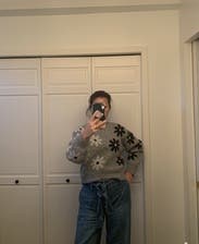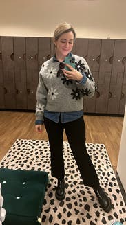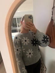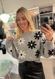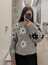 Wool-alpaca blend packs in the warmth with this sweater. Great for fall, cute playful floral pattern. Layered this over a longsleeve