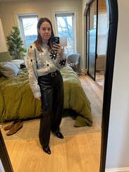 Wore to work with different pants and it was super cute! I’m quite sensitive to fabrics so it was a bit itchy for me but I could handle it most of the day. Slight crop but I have a short torso so it worked fine if I wore a high waisted pant.