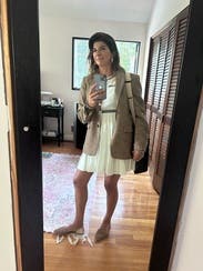 Wore this blazer several times, really liked that it wasn't too tight, but also wasn't oversized to look sloppy like so many are this season. The pattern is nice, but not overwhelming. The weight and feel of the fabric also felt like a good quality. As soon as I sent it back, I wanted to wear it again to a work event! Polished yet not trying too hard.