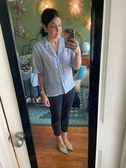 I loved this shirt. Wore it to patio margaritas, sports bar trivia, and a coffee date. Paired it with a black skirt, denim shorts, and white jeans so it's easily styled up or down and looks great both open and buttoned. Only negative comment is the material is a little uncomfortable - definitely need a tank underneath.
