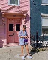 Obsessed with this set. I wore the top both with the shorts and also paired with other pants – and received compliments on it both ways! The top is intentionally oversized which I love. Think it looks great both open and buttoned closed.