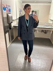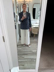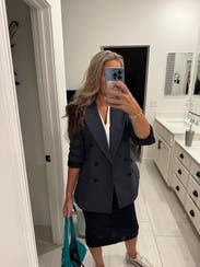 I tried to style this more casually yet it still looked like I was ready to go to work. Very tailored. Nice quality. Brand new with tags.