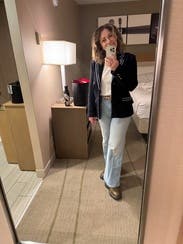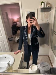 I like the blazer but the fabric was itchy so wore a turtleneck