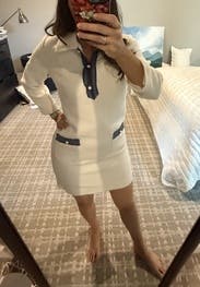 I love everything about this dress, the color combination and the fit is perfection. I am petite and it hit me in the right places.