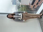 Arrived new with tags. Beautiful high-end fabric which makes it look expensive and fit really well. I wore a white scoop neck underneath to keep it slightly unbuttoned. I could’ve styled it better but was just wearing for a day of zoom calls (where I received a compliment on how nice it was). I just ask other renters to follow the care instructions since the fabric is what makes this sweater so don’t ruin it in a washer/dryer!