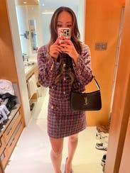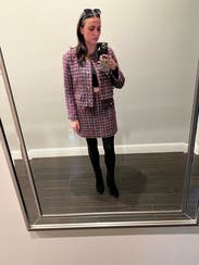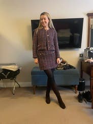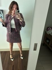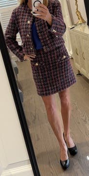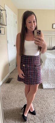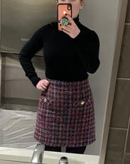 Who knew tweed could be so fun?I wore it with matching jacket for a work conference and wore it with a chunky sweater and pink sneakers another day. I found it a bit small in the waist but not unbearable. It is a bit short too but I like that lol