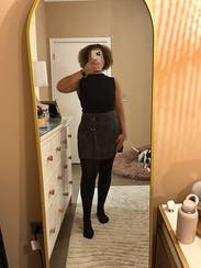 The little buckle details made this feel kilt-y. Tried oversized hoodie to cover them, with combat boots & it looked great!! But sadly, more appropriate for someone 10 years younger than I. Couldn’t make it work for me.🫠 Sat low on waist, technically okay fit but waist still too big; wasn’t too short.