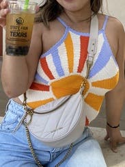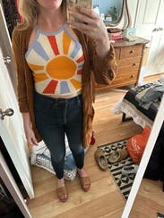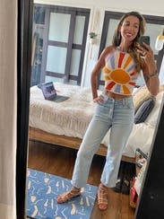 I was so excited I got to try this crotchet crop top! It’s so thick, which meant I could wear this without a bra (YAY!). I loved the sunshine design. Super cute paired with jeans!