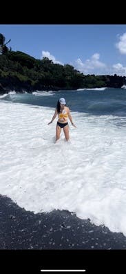 I wore this on my honeymoon to Hawaii. Loved it—the only thing is that it’s pretty tight. I couldn’t wear a bra with it, but since it’s a thicker material, that was fine.