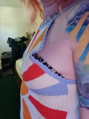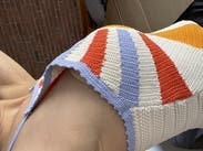 Like the other reviewers mentioned, this fits oddly. It gaped around my chest and armpit in a way that made me a little uncomfortable when I wore it in public. As soon as I covered up the awkward bits with a sweater I felt much better. I got several compliments on it, and I appreciated the knit texture and fun colors.