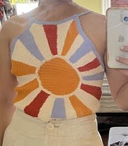 Loved this little retro crocheted number! So fun for the beach but it was a little stiff/itchy. I also could have sized down, it ran a little on the large side