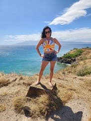 I wore this top out for a day of bar hopping on Rainey St in Austin. It fit perfectly, and I loved the vibrant colors. I’m busty and was able to wear it without a bra due to the high quality, supportive fabric.
