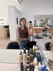 The brown was so pretty with navy blue Maje pants and summer tanned skin!