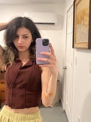 I should have rented a small instead of an extra small. One of the buttons puckered a wee bit because of it. I didn't realize the brown had a reddish tint. I liked it though