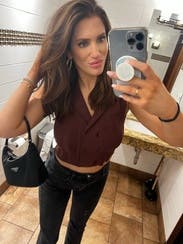 This was a beautiful top. Definitely need high waisted jeans or pants with it. If it wasn’t so expensive I would have purchased it 100%. I’m a 32DD bra and usually a medium. I went with the size 3 because I didn’t want it to be too cropped but likely could have been fine with the size smaller. Super cute for a date night. I also wore it to work with a blazer over top. LOVE!!’
