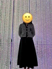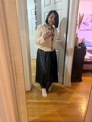 This sweater is cute, but I had a few misconceptions based on the reviews. The sweater I rented did not have the ruffle collar. There were little snap button holes where it looks like it could have snapped in, but it was not there and it wasn’t separate in a pouch either. The other main point, this sweater looks black in pictures, but it’s navy. Inside it’s questionable, outside, there’s no doubt. I paired it with black pants & felt a little awkward.