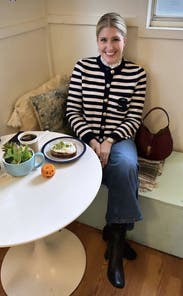 I got this honestly bc my last name starts with an S and I am obsessed, sweater feels thick (which I like bc feels like good quality), hits like right at the hip. Very … I’m gonna say it … connecticut coastal … which I’m also just YES about.