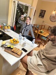 Maybe I’m just a sucker for a monogram that aligns with my name, but this was a rental fail because I actually purchased. It’s weighty but not hot, amazing buttons and details and works over the shoulders or actually worn. Love. Preppy, classic, an overall great versatile piece.