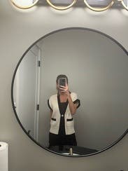 I was pleasantly surprised by this top. I deviated from my normal style but I really liked it. I wore long sleeve black basic underneath. The only thing I didn't like is the button is rhinestones which i didn't realize from the pictures but not too bad.
