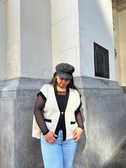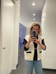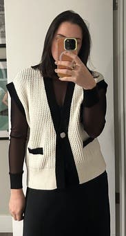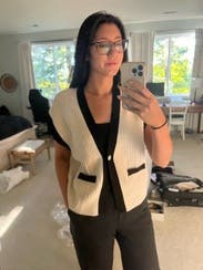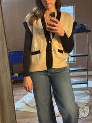 This little sweater vest can be worn dressy or with jeans. IG @bethielife
