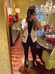 Love this sweater vest and the gold button add character to it. It’s a great basic that gives off a classic and elegant vibe
