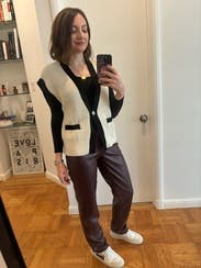Wore this first over a black long sleeve with black dress pants to work. Then wore to a “creative casual” dress code networking event with jeans. Loved it.