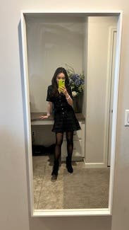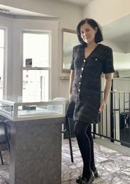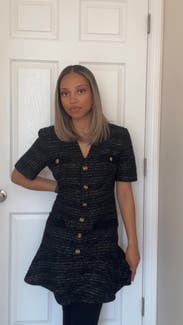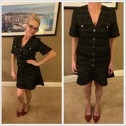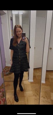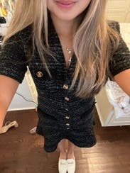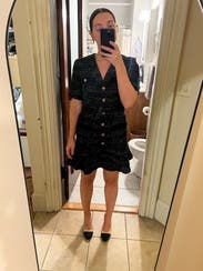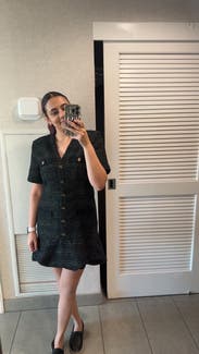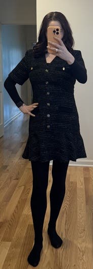 I love Sandro and this dress didn't disappoint. The fabric is a heavier boucle and there is some shimmer in it, so I was a bit concerned it was too winter season. But it's light and airy to wear and fits TTS. Loved the fit.